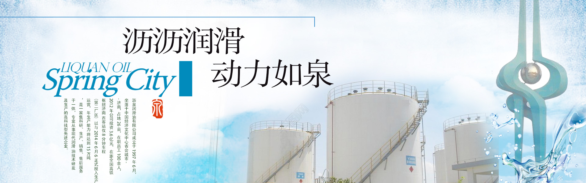 瀝泉潤滑油有限公司成立于1997年6月,坐落于中國經(jīng)濟(jì)文化中心省會(huì)城市--濟(jì)南, 占地26畝,在職員工100余人,2012年公司投資3.6億元,在距全國高鐵樞紐濟(jì)南 西客站僅8分鐘車程(第二廠區(qū))以與2014年6月6正式投入生產(chǎn)運(yùn)營,年生產(chǎn)能力 將達(dá)到15萬噸,是一家集生產(chǎn)、銷售、售后服務(wù)于一體,專業(yè)從事潤滑油生產(chǎn)的企業(yè)。 產(chǎn)品共有15大類,150多個(gè)品種,廣泛應(yīng)用于汽車、工程機(jī)械、船舶、冶金、發(fā)電 機(jī)組、工業(yè)設(shè)備、軍工等領(lǐng)域。 公司產(chǎn)品已形成多系列、多品種、多規(guī)格的格局。并在30多個(gè)省市自治區(qū)建立400 多家代理商。經(jīng)銷商8000多家,深受用戶好評(píng)! 在潤滑油行業(yè)領(lǐng)域展現(xiàn)著她傲人的身姿。公司秉承“以人品打造精品,以精品奉獻(xiàn) 客戶”的企業(yè)理念,引進(jìn)國內(nèi)外先進(jìn)企業(yè)管理經(jīng)驗(yàn)和管理方法